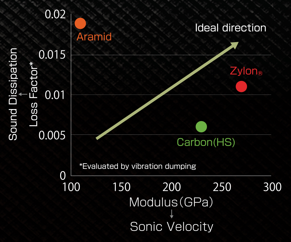 ●High moduluce:The physical properties of specific modulus ※ and loss factor are important for the diaphragm material of speaker.